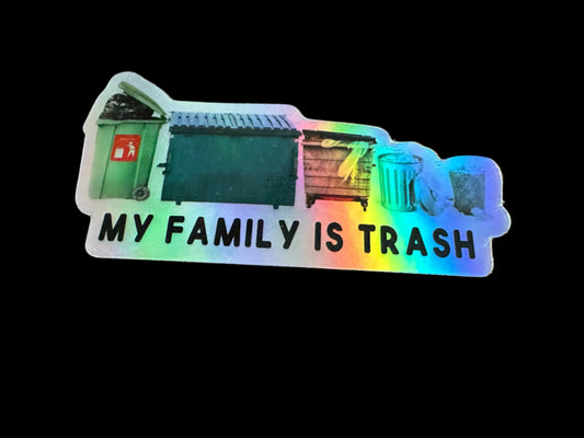 My Family Is Trash Vinyl Die Cut Holographic Sticker | Stick Figure Family Parody